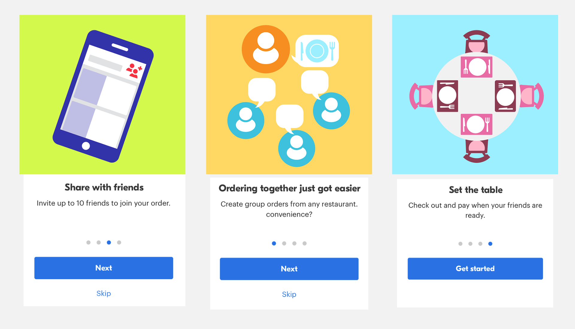 I was tasked to create an animated onboarding hero's for both Grubhub & Seamless to promote shared order. Design and copy were done by team members while my focus was to illustrate and animate
