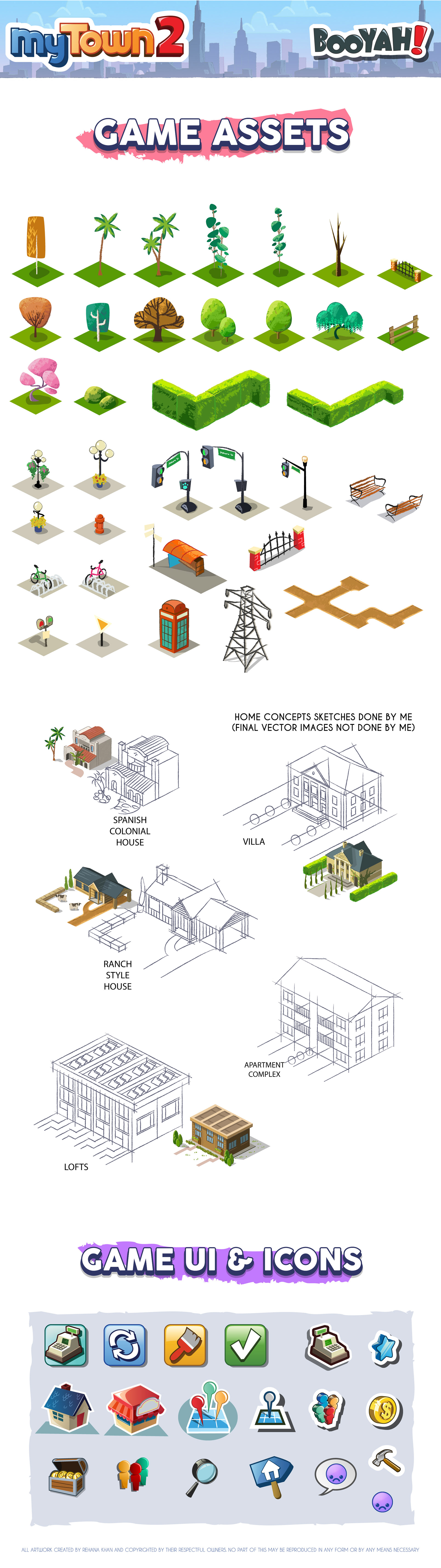 Concept design & game asset creation for Booyah!'s game titled "MyTown 2" set on the Facebook social gaming platform & mobile gaming